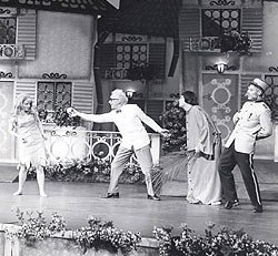 Ruusubaletti vuodelta 1966 on hilpeä sekoitus lyyristä satua, romanttista komediaa, puskafarssia, satiiria ja protestia. Samoihin aikoihin radion Orvokki-kabareet kritisoivat revyyn keinoin kotia, uskontoa ja isänmaata, koululaitosta ja porvarillista moraalia. Arvo Salon Lapualaisooppera karnevalisoi falskiudellaan elitististä korkeakulttuuria ja asettui tanakasti 30-lukulaisia kovia asenteita vastaan. Elettiin iloista ja moniäänistä 60-lukua.