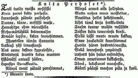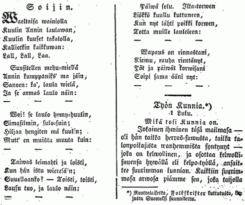 Bergh julkaisi Oma maa -runosta oman versionsa Oulun Wiikko-Sanomissa 19.4.1834.