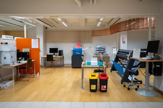Vaativampaa luovaa käyttöä varten voi varata mediatyöaseman keskustakirjasto Saaren Digiverstaalta.