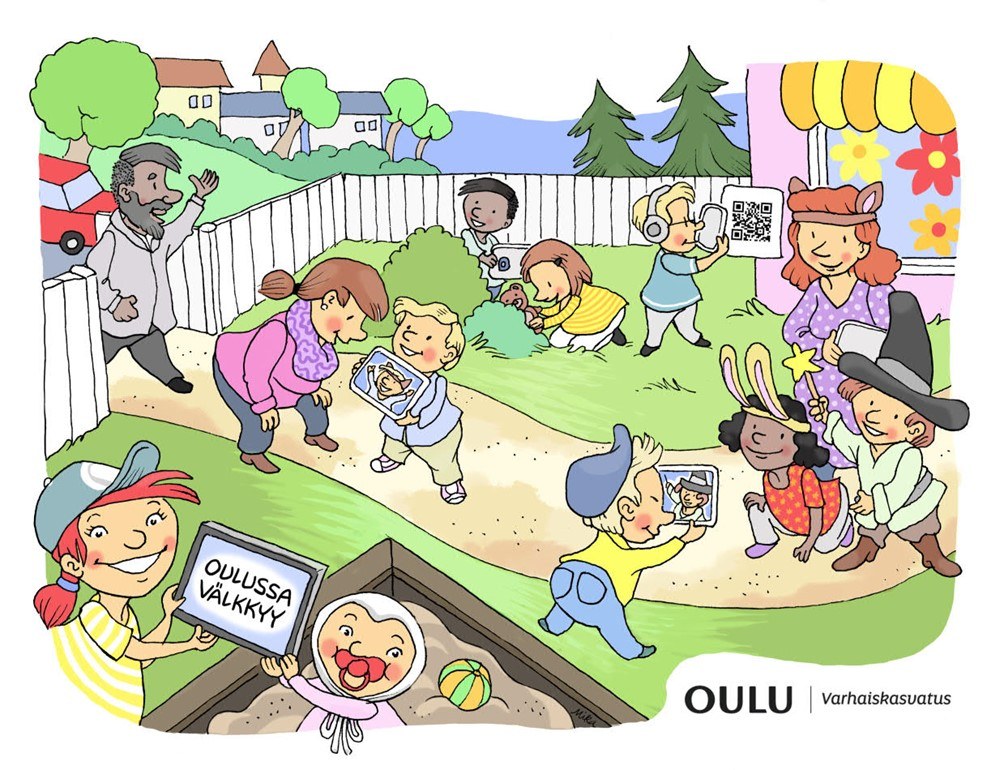 Välkyt (the geniuses) is an operations model established in Oulu that introduces digital solutions into early childhood education and care to support pedagogy. The aim is to use digital devices and applications in a pedagogically purposeful way that supports the child’s growth and learning. Digitality is utilized as a tool in all groups, in all aspects of learning, and in all learning environments. All children have equal opportunity to practice, try, and produce content by themselves or together with other children with digital tools. This promotes the children’s creative thinking, cooperation, and multiliteracy skills. The staff guides the children to use the digital tools and environments in a versatile, responsible, and safe way.