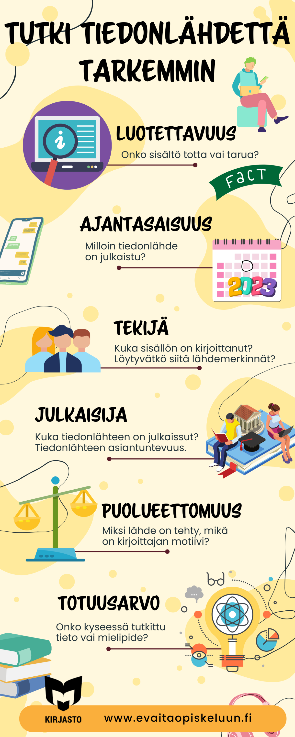 Katso Faktabaarin Tarkista kolme kysymystä -video sekä Oulun kaupunginkirjaston video lähdekritiikistä.