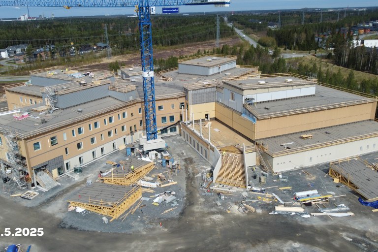 Jääkärinkankaan työmaalla käy toukokuussa 2025 kuhina. Työvaiheet etenevät porrastetusti rakennuksen eri osissa. Työmaalla työskentelee tällä hetkellä 75 henkilöä.