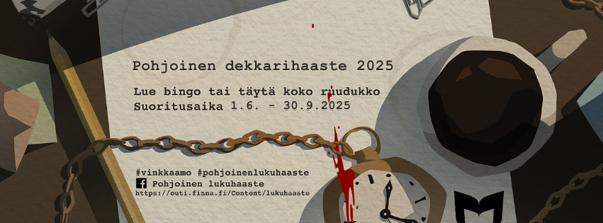 Kesän 2025 Pohjoinen dekkarihaaste on julkaistu! Lue dekkaribingo tai täytä koko ruudukko. Haastekohdat ja bingoruudukon löydät OUTI-verkkokirjastosta. Aikaa haasteen suorittamiseen on 1.6.–30.9.2025.