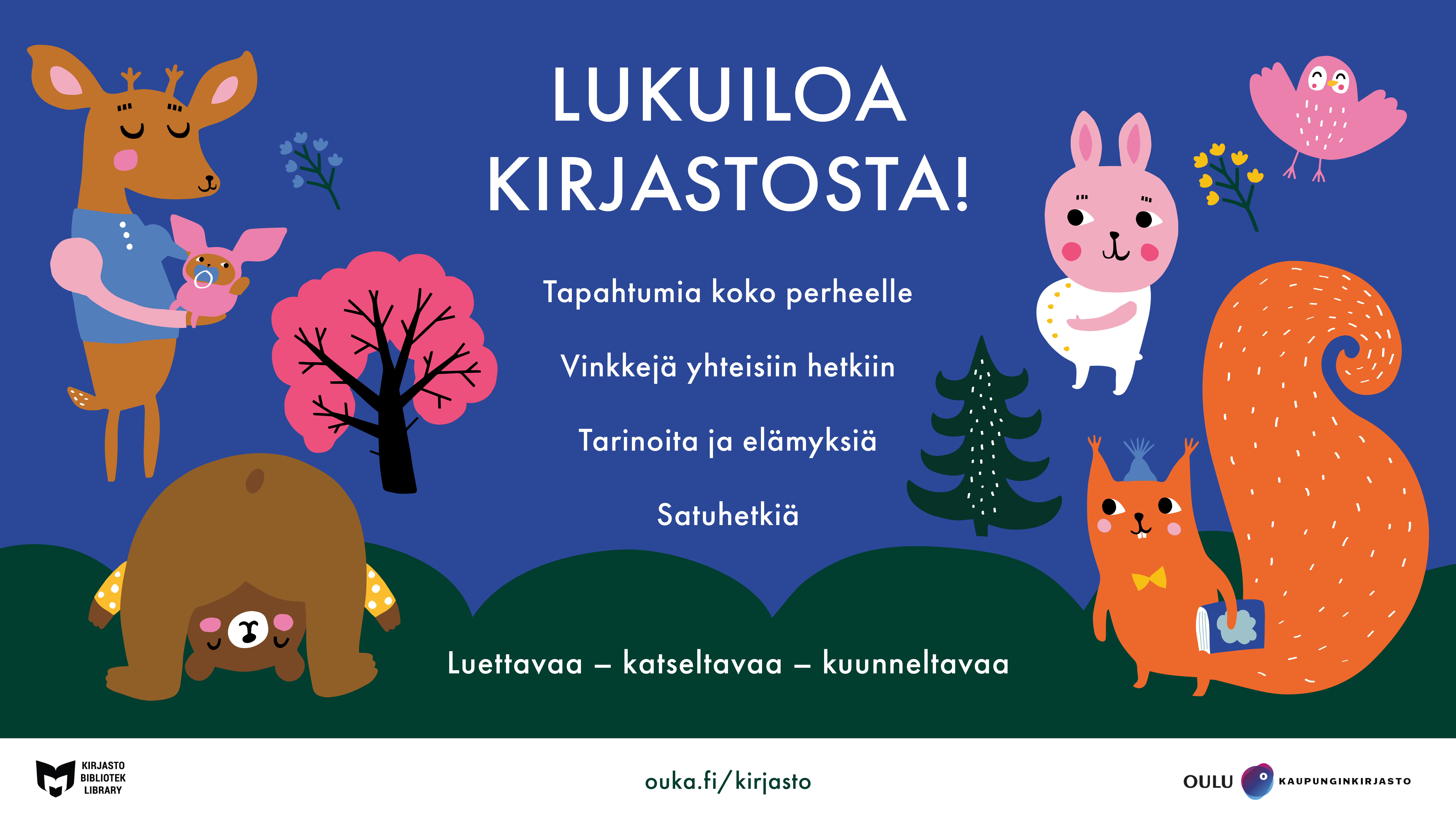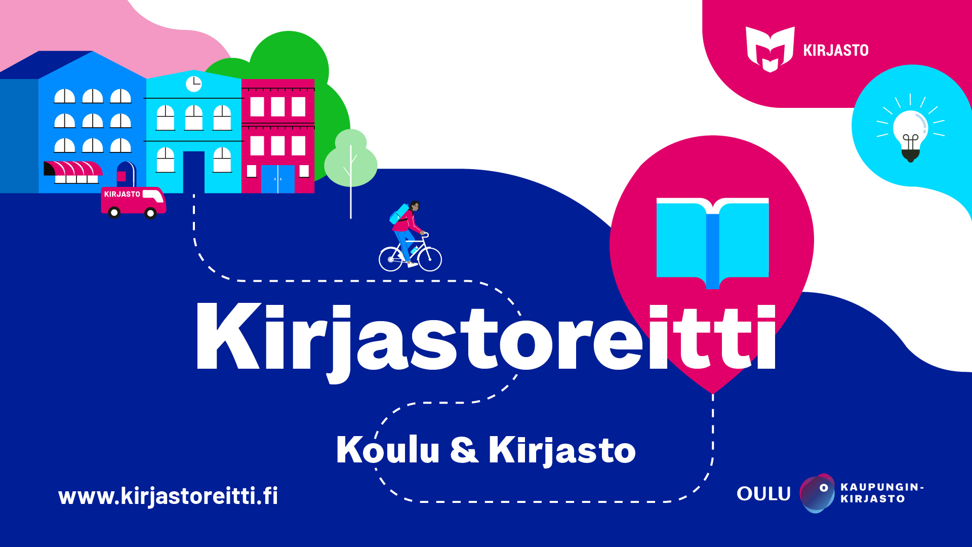 Lataa Kirjastoreitin infonäyttökuva koulun tai kirjaston infonäyttöön.