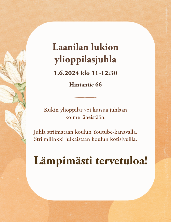 Laanilan lukion valmistuvien nimet ja kutsu ylioppilasjuhlaan