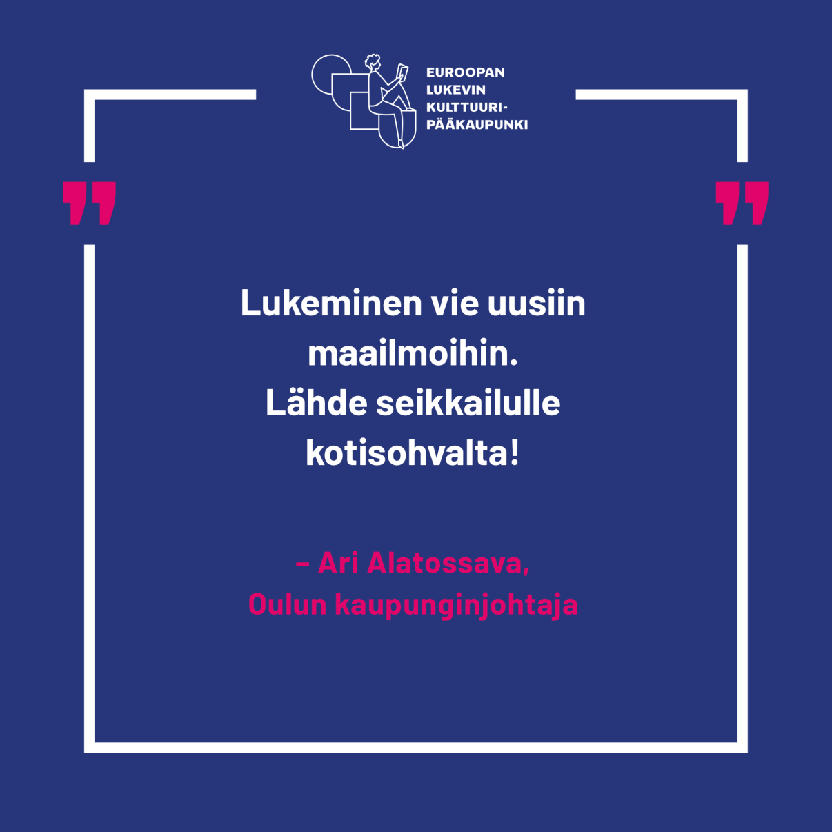 Käytä somessa hästägejä #EuroopanLukevinKulttuuripääkaupunki #LukevinKaupunni #OuluLukee #Oulu2026.