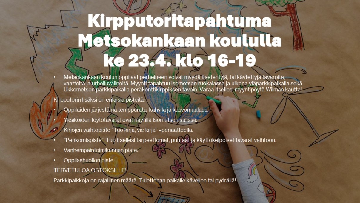 Tervetuloa Metsokankaan koululle Kirpputoritapahtumaan ke 23.4. klo 16.00 - 19.00!