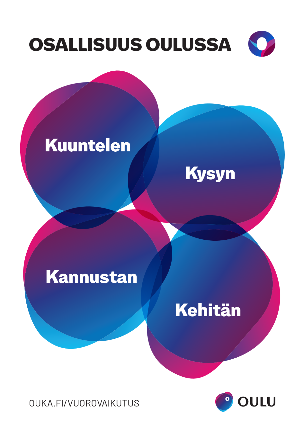 Osallisuuden ja vuorovaikutuksen kehittämistyö jatkuu ja toimintaa arvioidaan säännöllisesti. Asukkaiden ja sidosryhmien palautteet ja osallisuuskyselyt ovat keino kehittää toimintaa: ne ovat olennainen osa Oulun osallisuustyötä.