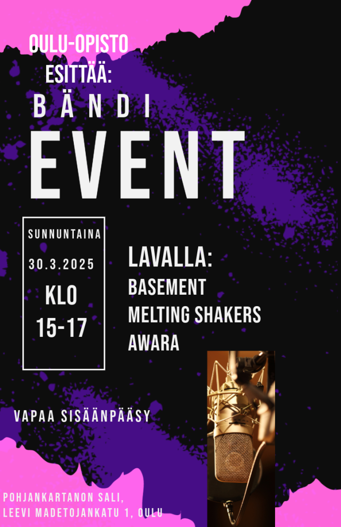 Oulu-opisto esittää: BÄNDI EVENT sunnuntaina 30.3. klo 15–17