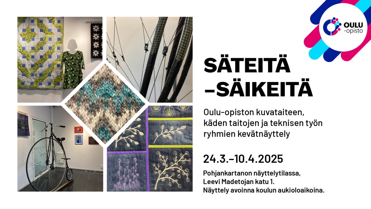 SÄTEITÄ – SÄIKEITÄ Oulu-opiston kuvataiteen, käden taitojen ja teknisen työn kevätnäyttely Pohjankartanon näyttelytilassa 24.3.–10.4.