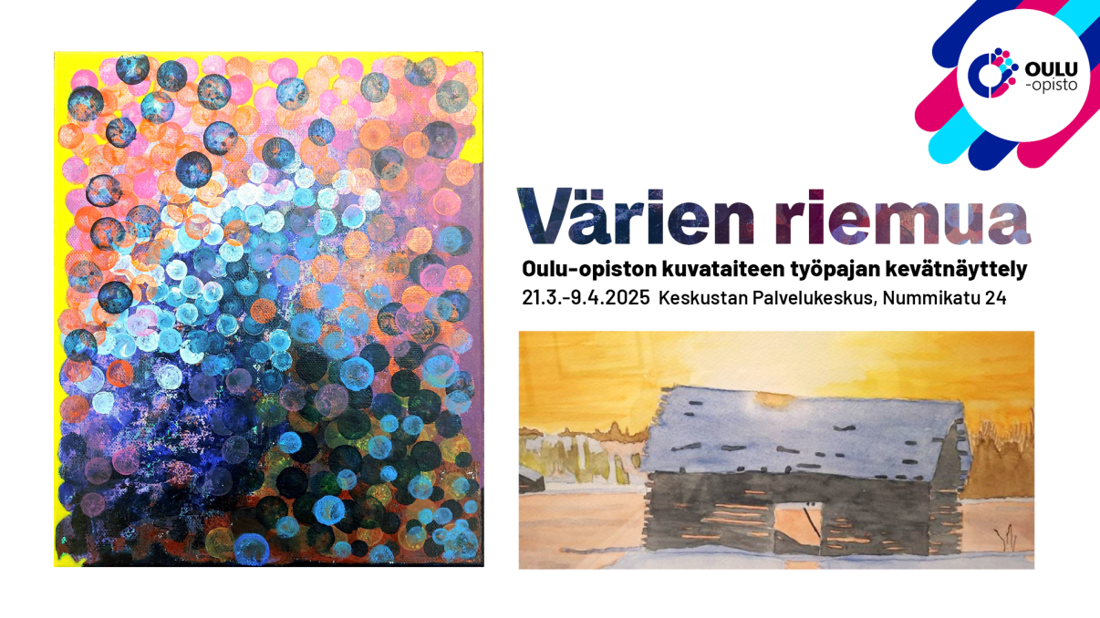 Värien riemua – Oulu-opiston kuvataiteen työpajan kevätnäyttely keskustan Palvelukeskuksessa 21.3.-9.4.