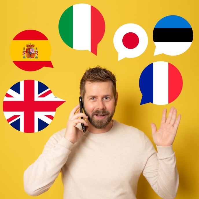 englanti, italia, japani, kiina, korea, kiina, japani, suomi ja S2, venäjä, viittomakieli, viittomat puheen tukena sekä viro