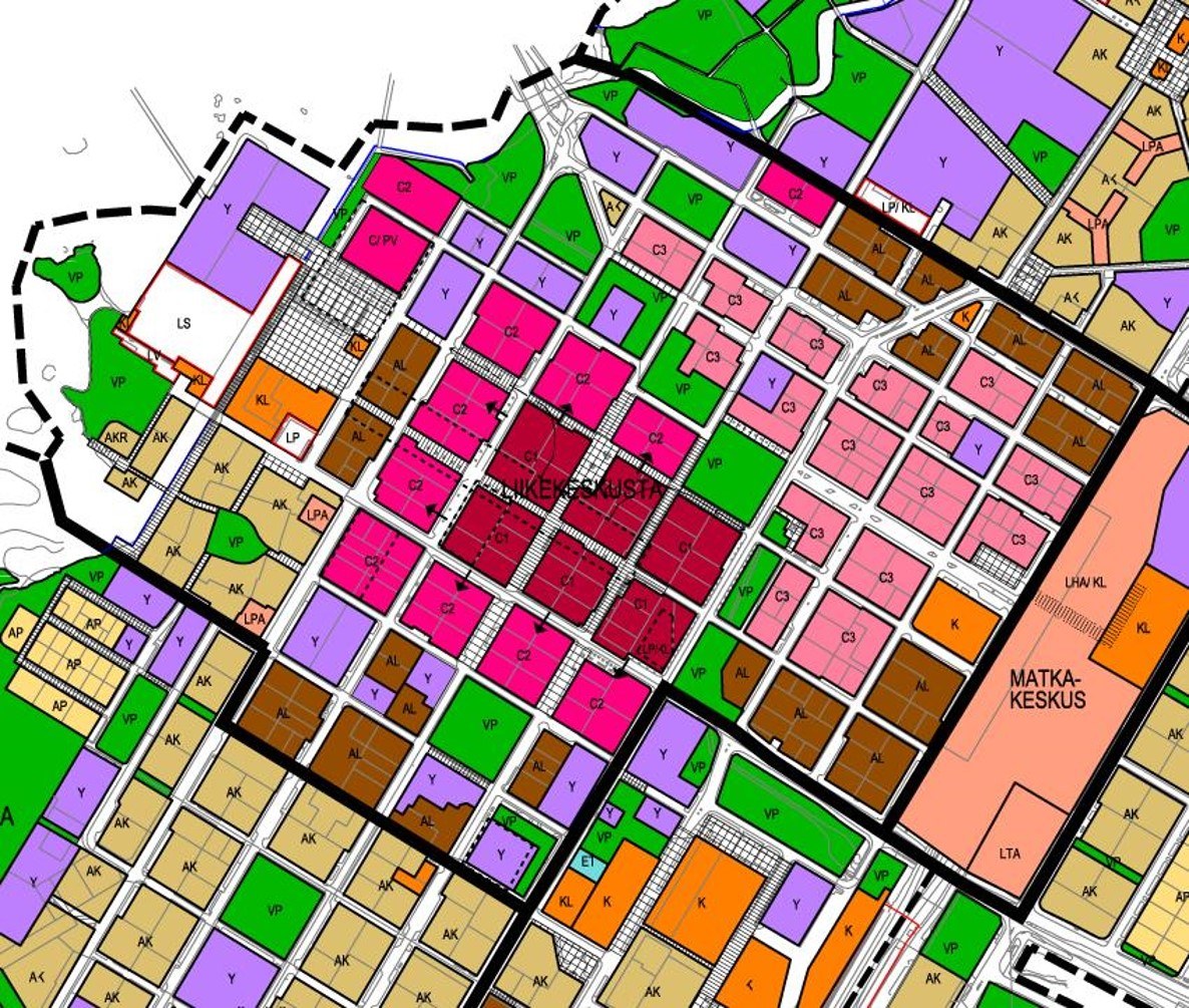 Kaavassa määriteltiin ensimmäisen kerran ydinkeskustan, Kirkkokadun ja Hallituskadun liikekorttelit, joille sallittiin enemmän rakennusoikeutta kuin asuinkortteleille.