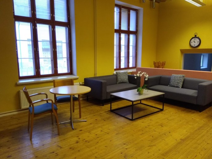 Lukiolla opiskelijoilla on käytössään viihtyisät oleskelutilat, joissa viettää aikaa välitunneilla.