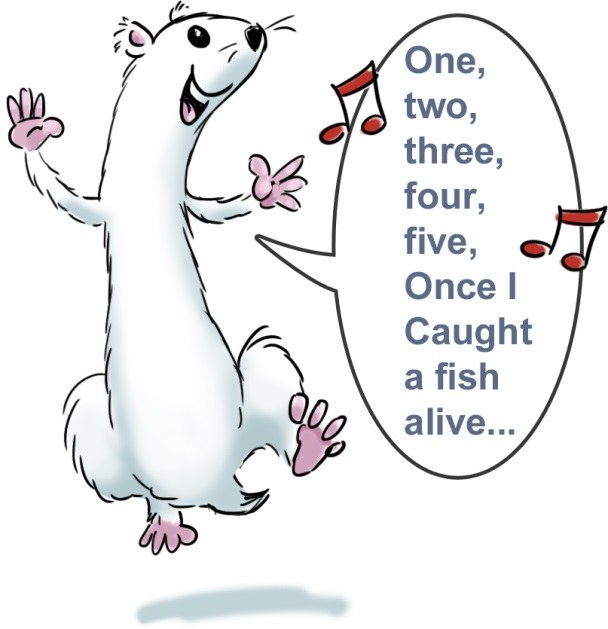 - Numeroiden kertaus jollakin aiempien kertojen laululla.
