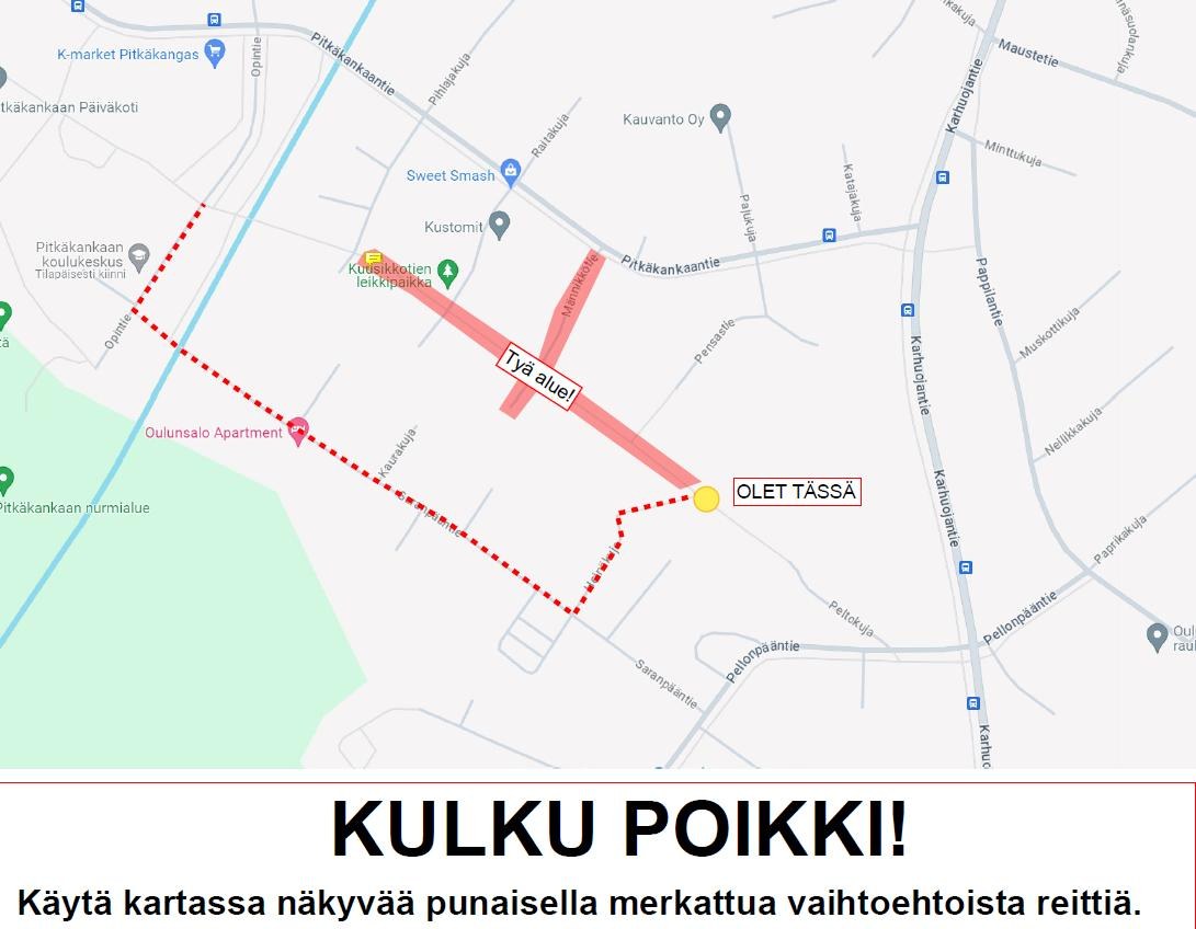Katusaneeraustyöt alkavat Pitkäkankaan koulun lähiympäristössä Männikkötiellä sekä Metsäpolulla, myöhemmässä vaiheessa myös Lepikkotiellä. Metsäpolun kevyenliikenteenväylä katkaistaan pois käytöstä.