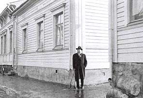 Runoilijaprofessori tuli synnyinkaupunkiinsa viimeisen kerran vuonna 1961. Silloin paljastettiin lapsuudenkodin seinään kiinnitetty muistolaatta. Isonkadun ja Kauppurienkadun kulmassa sijainneessa puutalossa toimi tuolloin Nikan kirjakauppa, ja rakennuksen kohtalo – purkaminen seuraavana vuonna – oli jo tiedossa. Atte Kalajoki piti marmorilaatan paljastuspuheen. Muistomerkki katosi talon purkutöiden yhteydessä ja löytyi myöhemmin Tuirasta. Joku oli myynyt sen kiinnostuneelle ohikulkijalle. Tänä päivänä muistolaatta on piilossa talon sisäpihalle johtavan rautaportin takana, mistä sitä on lähes mahdoton huomata.