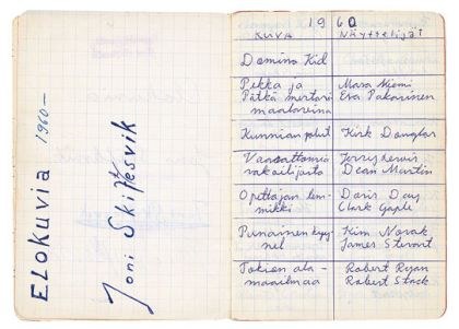 Eräänlaista uteliasta mielenlaatua kuvaa myös kiinnostus elokuviin. Skiftesvikin lapsuudessa Martinniemessä toimi vielä kaksi elokuvateatteria, Kuvala ja Routola, joiden näytöksissä Joni istui poikavuosinaan jopa useamman kerran samana iltana. Elokuvissa käyntinsä hän kirjasi tarkkaan omaan vihkoonsa. Vihkon mukaan parhaimpina vuosina tuli nähtyä yli sata elokuvaa.