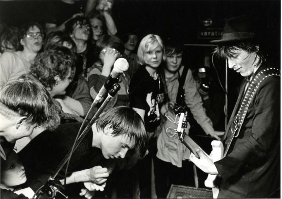 Nukke New Yorkista: Johnny Thunders villitsee yleisönsä totaalisesti Rattori-lupilla keväällä 1984. Kuva: Harri Nurminen.