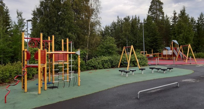 Perusvälineitten (keinut, jousikeinut, hiekkaleikkipaikka pienten liukumäki ja kiipeilyteline) lisäksi puistossa on