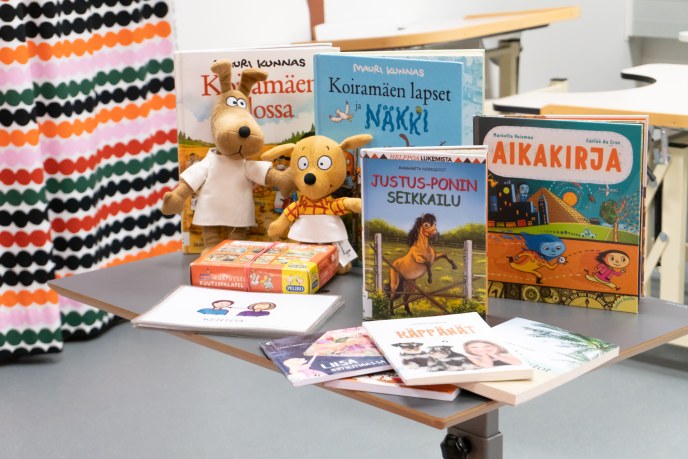 Moniin tarinoihin voi tutustua moniaistisesti. Kirjoja voi lukea, katsella, kuunnella ja tunnustella. Moniaistiset kirjat ja Selkis-kassien Kirjaleikki tukevat lukukokemusta ja auttavat tarinan ymmärtämisessä.