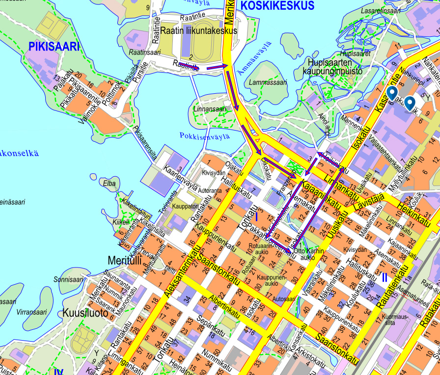 Autot ajavat tuttua reittiä: Raatintie - Merikosken sillat - Kajaaninkatu - Kirkkokatu - Pakkahuoneenkatu - Isokatu - Heikinkatu - Kirkkokatu. Keskustan reitti kierretään kahteen kertaan.