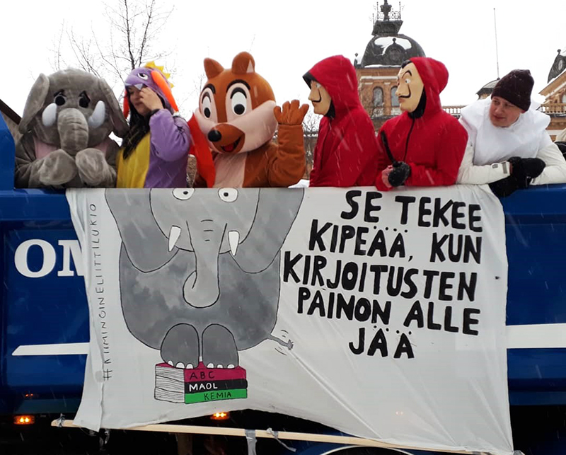 Abiturienttien penkkariajot Oulun keskustassa 10. helmikuuta