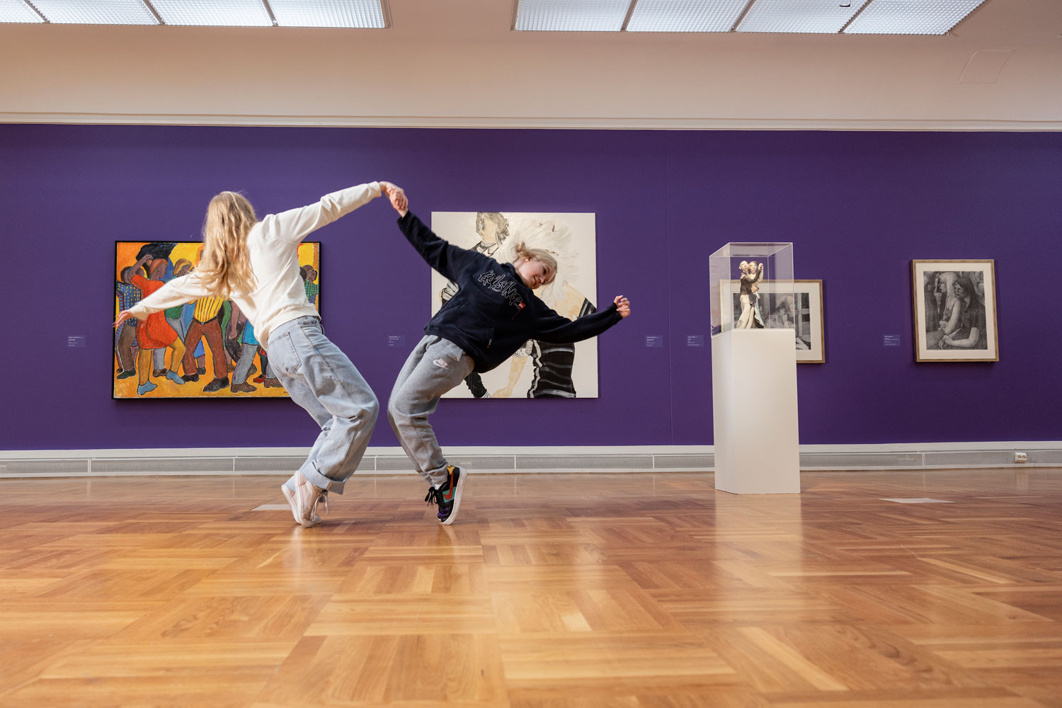 Oulun taidemuseon Tanssi! Liikettä kuvataiteessa 1880–2022 -näyttely esittelee suomalaisten museokokoelmien tanssia, tanssillista liikettä ja ruumiillisuutta kuvaavia teoksia.