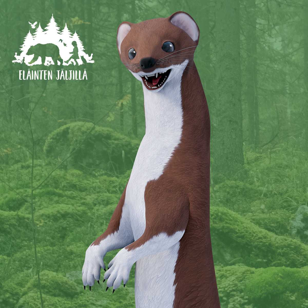 Eläinten jäljillä -näyttelyn kärppähahmon nimi on Vikke