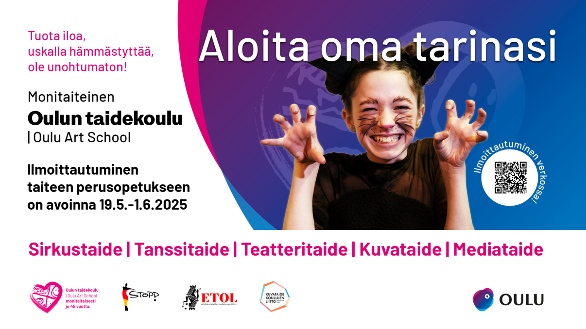 Ilmoittautuminen monitaiteiseen Oulun taidekouluun on avoinna 19.5.–1.6.2025