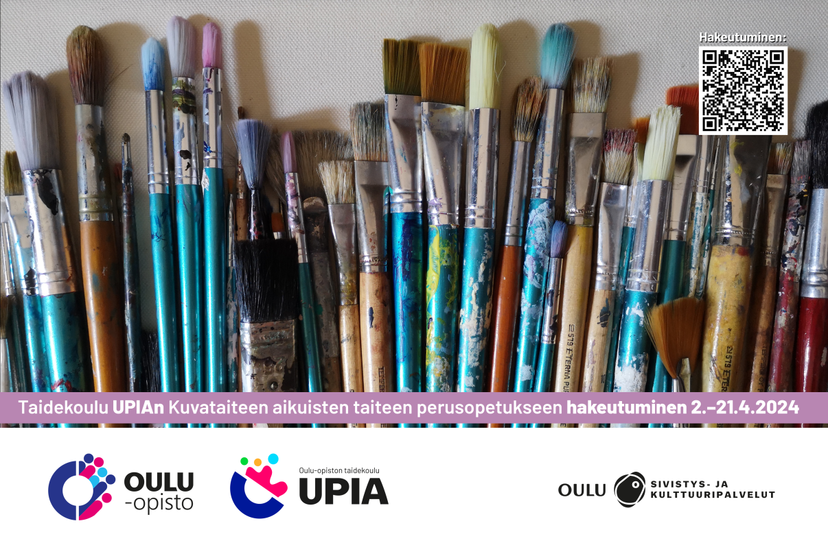 Haluatko aloittaa matkasi kuvataiteen maailmassa? Hae mukaan Oulu-opiston taidekoulu UPIAn Kuvataiteen aikuisten taiteen perusopetukseen 2.–21.4.2024 välisenä aikana.