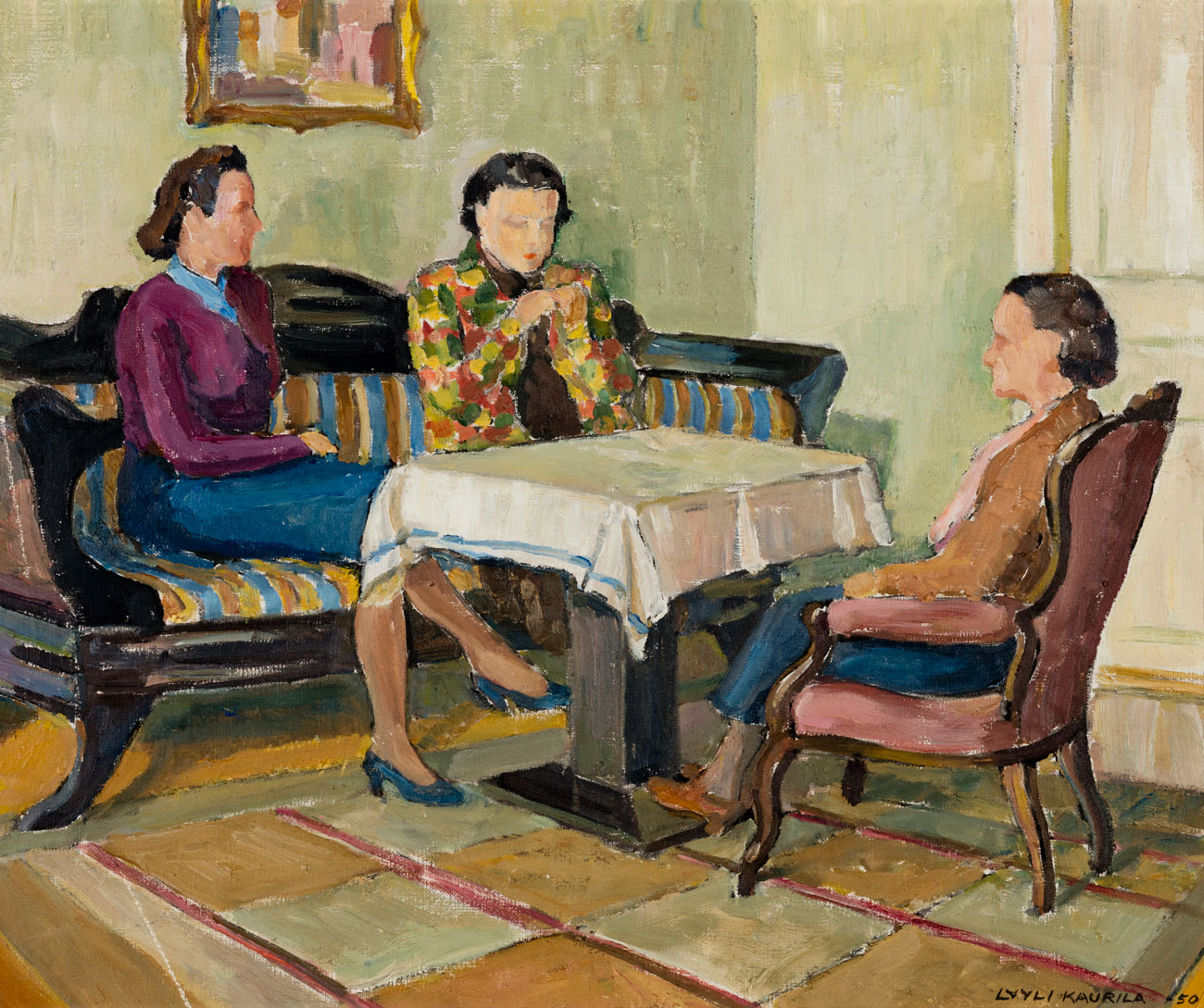 Kuva: Lyyli Kaurila (os. Moisio), Koulutuntien jälkeen (Ystävykset), 1950, öljy kankaalle, Oulun kaupungin kokoelma. Kuva: Mika Friman.