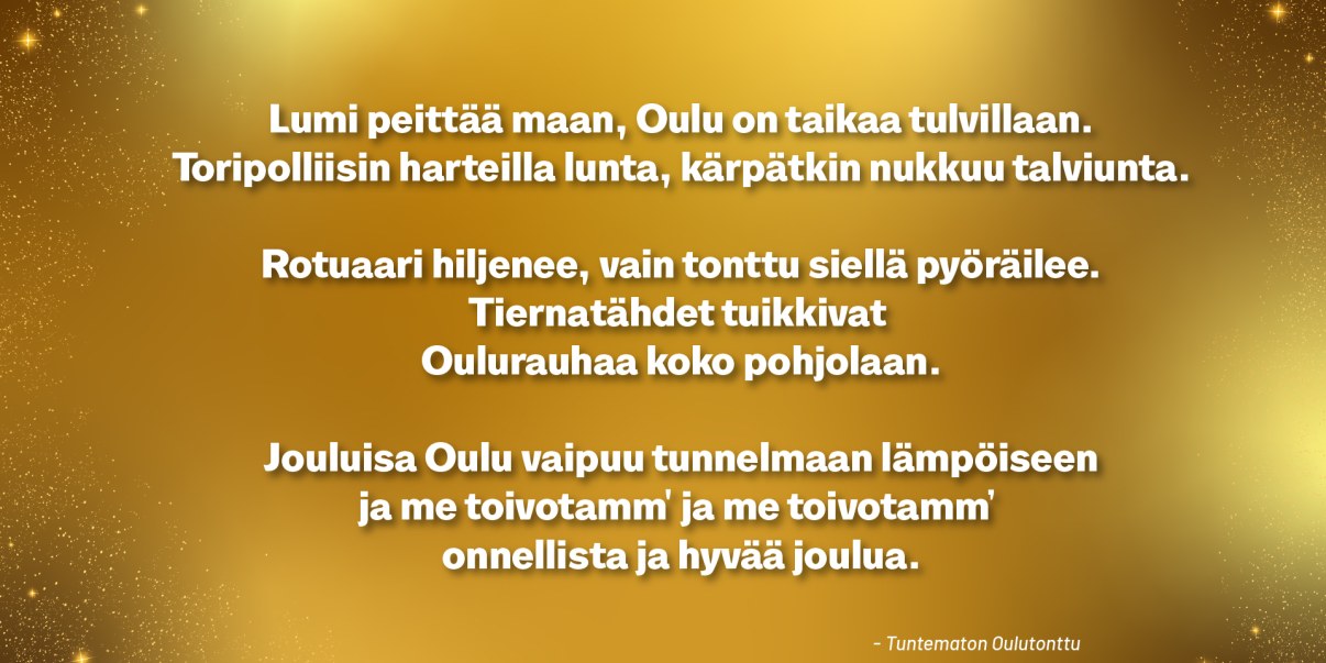 Lumi peittää maan, Oulu on taikaa tulvillaan.
