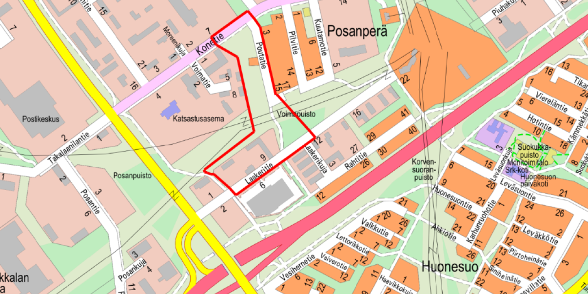 korttelin läheisyydessä olevista puisto- ja katualueista. Asemakaavan muutoksen tavoitteena on mahdollistaa päivittäistavarakaupan suuryksikön sijoittaminen alueelle. Työn aikana tutkitaan, paljonko korttelin 13 läheisistä puistoalueista olisi mahdollista ottaa osaksi tulevaa kaupan tonttia ja saadaanko alueelle suunniteltua uusi katuyhteys Laakeritieltä Konetielle, mikä on kaupan toteutuksen edellytys.
