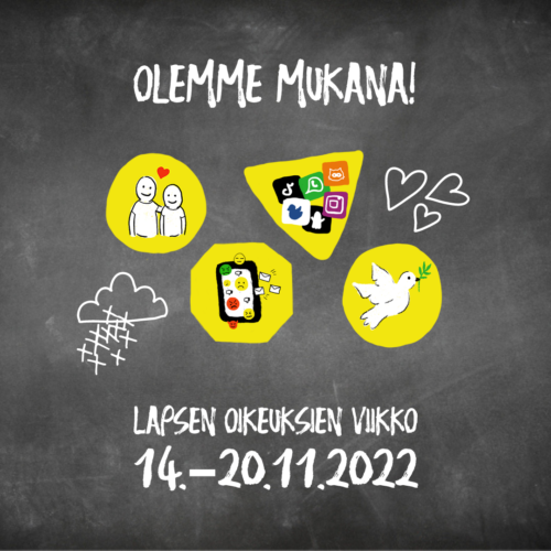 Tällä viikolla 14. - 20.11. vietetään valtakunnallista Lapsen oikeuksien viikkoa. Viikko huipentuu sunnuntaina 20.11. vietettävään kansainväliseen Lapsen oikeuksien päivään.