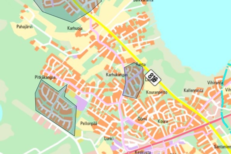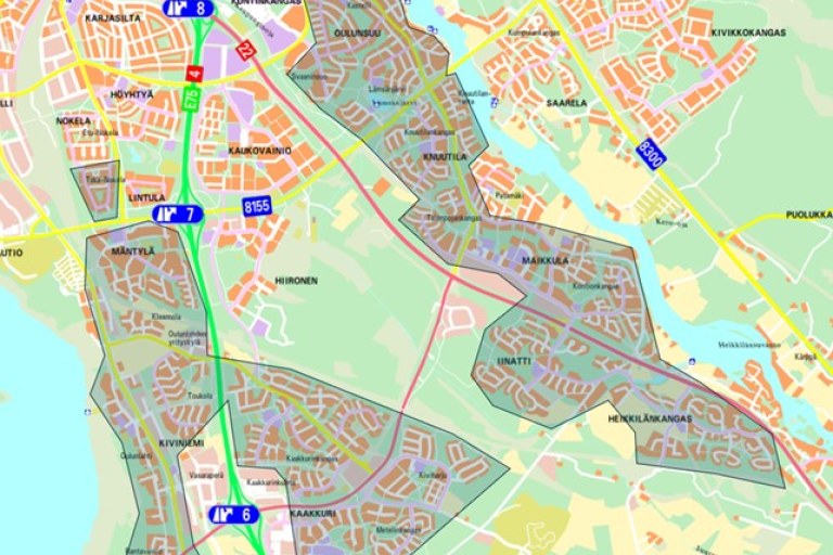 Kartoilla on suuntaa antavasti merkittynä alueita, joille eri operaattorit ovat kaivaneet valokuitua ja joilla Oulun kaupunki aikoo tehdä viheralueiden korjaustöitä kaudella 2025. Kartoilla on selvyyden vuoksi vain suurimmat yhtenäiset alueet, joten korjaustöitä tehdään myös näiden rajattujen alueiden ulkopuolelta.