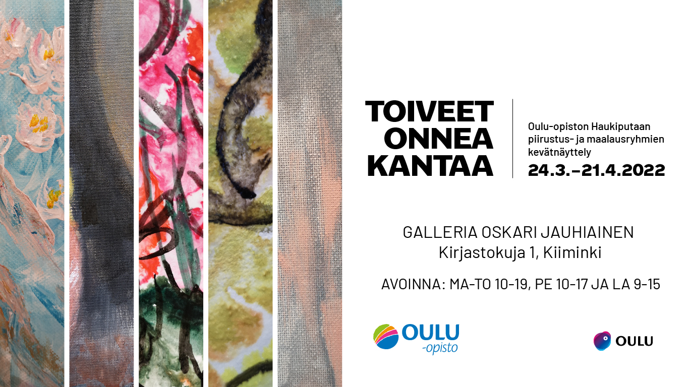Toiveet onnea kantaa Oulu-opiston ja Haukiputaan piirustus- ja maalausryhmien kevätnäyttely 24.3. - 24.4.2022 23.03.2022