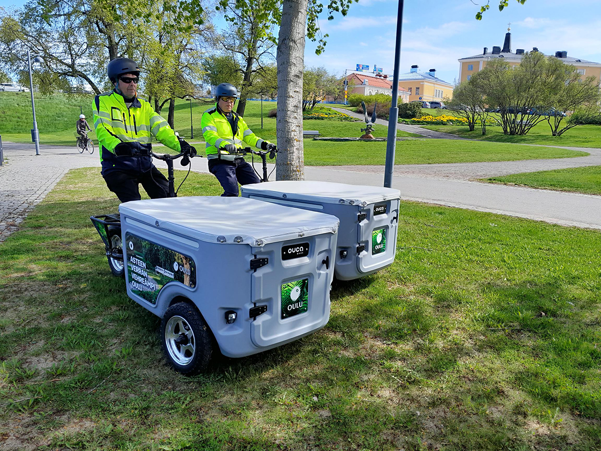 Oulun Infra-liikelaitokselle on hankittu käyttöön sähköavusteisia tavarapyöriä. Sähkötavarapyöriä käytetään keskustan viheralueiden kunnossapitotöissä. Kesäaikana Oulun Infralla on töissä kuutisenkymmentä määräaikaista ympäristön kunnossapitäjää, joista iso osa pyöräilee työkohteisiin. Sähköavusteinen tavarapyörä keventää matkojen kuormittavuutta sekä nopeuttaa ja helpottaa liikkumista. Työkalut kulkevat jatkossa kätevästi mukana pyörän tavarasäilössä. Samalla sekä puistoissa autoilu sekä päästöt vähenevät. Pyörät toimitti oululainen Oucabikes.