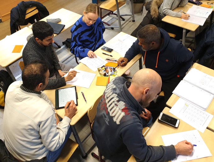 Alkeisryhmiä on kolme ryhmää luokkahuoneessa ja yksi Teamsissa. Kursseilla on sama sisältö.
