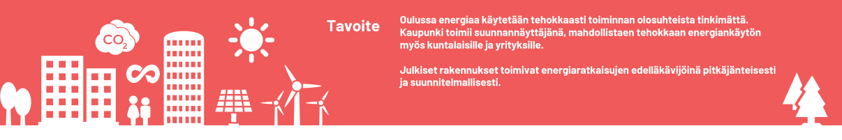 Oulussa energiaa käytetään tehokkaasti toiminnan olosuhteista tinkimättä. Kaupunki toimii suunnannäyttäjänä, mahdollistaen tehokkaan energiankäytön myös kuntalaisille ja yrityksille.